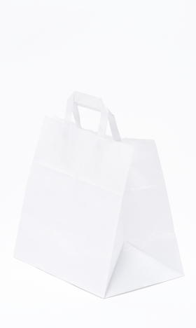 Mindenfajta csomagolásra alkalmas szalagfüles fehér papírtáska kedvező áron. Alapanyag: 70gr/m2 fehér nátron papír. Fül anyaga: papír. Teherbírás: 3-5kg. Csomagolás: 250 db/doboz. Utólag 1-4 szín color nyomtatással tudjuk emblémázni egy vagy két oldalon, gyors átfutási határidővel. Egyedi gyártás is lehetséges, akár 100% nyomtatott felületen. Árajánlatot kérjen munkatársainktól! Rendelés esetén azonnali személyes átvétel, vagy gyors kiszállítás Magyarország egész területén.