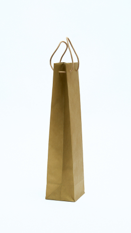 Italos palack csomagolásra alkalmas luxus kivitelü zsinórfüles papírtáska. Anyaga 120 gr/m2 Arany csíkos kraft papír, többféle színben elérhető. Nagy teherbírású a zsinórfül miatt, fülénél, talpánál karton merevítést ragasztunk bele, igy még jobb a szakítószilárdsága, teherbírása. Megrendelésre nyomtatott papírtáskát készítünk belőle. Emblémázni 1-4 szín color nyomtatással tudjuk, egy vagy két oldalon, gyors átfutási határidővel. Egyedi gyártás is lehetséges, akár 100% nyomtatott felületen, egyedi zsinór színnel. Árajánlatot kérje munkatársainktól! Nagy raktárkészlettel rendelkezünk. Rendelés esetén, azonnali személyes átvétel vagy gyors kiszállítás Magyarország egész területén.
